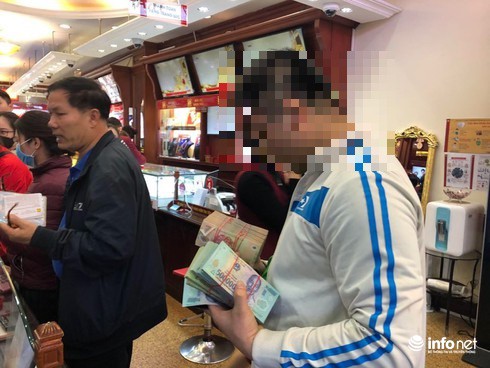 Anh Thìn quê ở Hưng Yên cho biết, sáng nay anh đi từ Hưng Yên lên Hà Nội để bán 9 cây vàng miếng SJC.