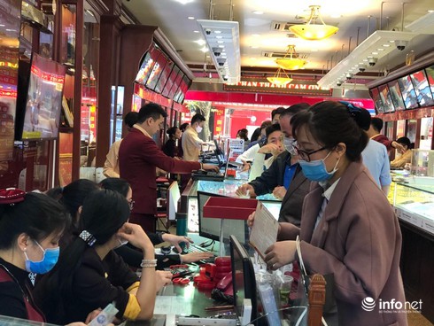 Chia sẻ với Infonet, đại diện Tập đoàn vàng bạc Phú Quý cho biết, lượng khách của ngày hôm qua và ngày hôm nay đến cửa hàng giao dịch có tăng nhưng không có nhiều đột biến. Ngày hôm qua, giá vàng lập đỉnh nên lượng khách đến đông hơn nhưng có nhiều khách đến chỉ để tham khảo giá. Còn sáng nay giá vàng giảm, lượng khách cũng giảm, khách đến mua - bán là tương đương nhau.