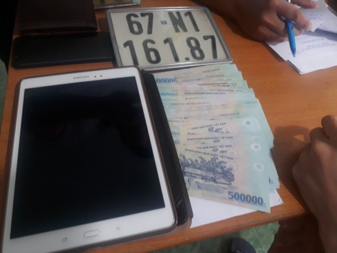 Khám xét nơi ở, lực lượng chức năng thu giữ 1 điện thoại di động hiệu SAMSUNG Galaxy J7, 1 máy tính bảng hiệu SAMSUNG Tab A, 1 ví tiền trị giá 48 triệu đồng tiền mặt, cùng một số giấy tờ khác.