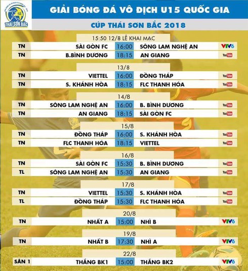 Theo lịch được VFF công bố, VCK giải U15 Quốc gia - Cúp Thái Sơn Bắc 2018 sẽ diễn ra từ ngày 12 đến 22/8 trên sân Thống Nhất. 8 đội bóng tham dự giải sẽ được chia thành 2 bảng. Bảng A gồm có các đội bóng: Sài Gòn FC, Sông Lam Nghệ An, Becamex Bình Dương và An Giang. Trong khi đó bảng B gồm: Viettel, Đồng Tháp, Sanna Khánh Hòa và FLC Thanh Hóa. Cả 2 bảng đấu được đánh giá khá cân bằng khi có sự góp mặt của những đội bóng có tiếng cũng như ít tiếng tăm hơn.