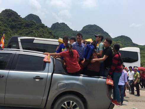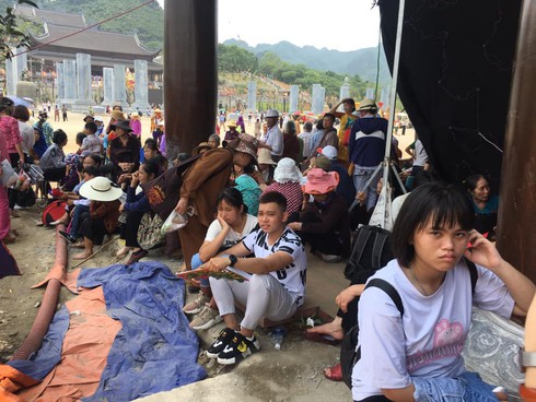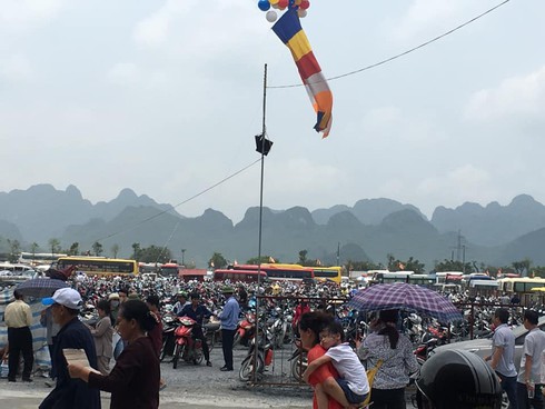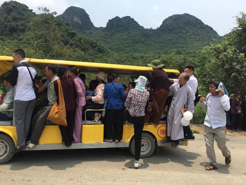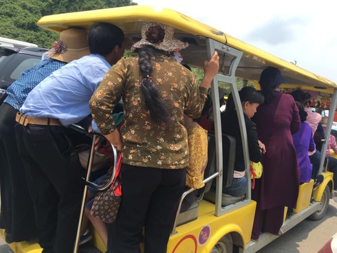 Người dân đổ xô về chùa cả trẻ con và các phật tử gây nên cảnh chen chúc từ ngay bãi đậu xe tới bến xe điện. Ngày 12/5, Ban Tổ chức miễn phí vé xe điện cho phật tử, người dân tham quan từ bến xe lên khu vực nhà chùa với khoảng cách 5 km. Tuy nhiên, do quá đông và xe điện không phục vụ kịp. Người dân vẫn cố gắng chen chân lên xe điện bằng được để lên chùa.