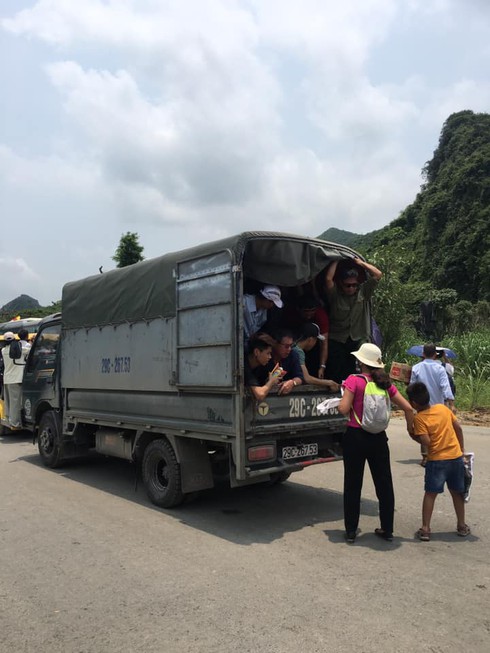 Chị Hoàng Thị Yến và con gái đi từ Nam Định lên, chị Yến kể mẹ con chị đến chùa từ 8h sáng và cứ ngồi chờ xe điện và đến 11h mới được lên chùa. Cảnh chờ xe điện xe ở không nhưng không chạy khiến người dân bức xúc cho rằng ban tổ chức không muốn cho xe chạy. Họ xếp lốt bằng cách ngồi lên xe và bám đu lên các xe khác với mong muốn một lần được đến chùa Tam Chúc.