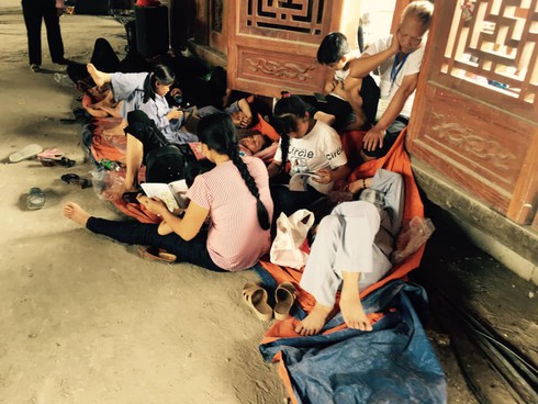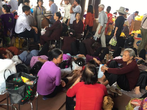 Bà con phật tử nằm vạ vật vì mệt |