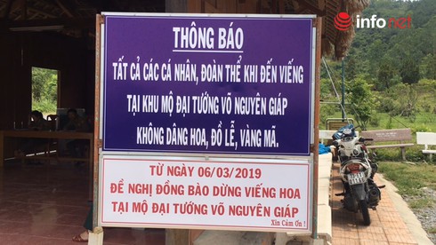Du khách đến viếng tại khu mộ Đại tướng, không được dâng hoa, đồ lễ, vàng mã. |
