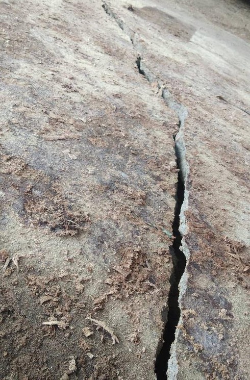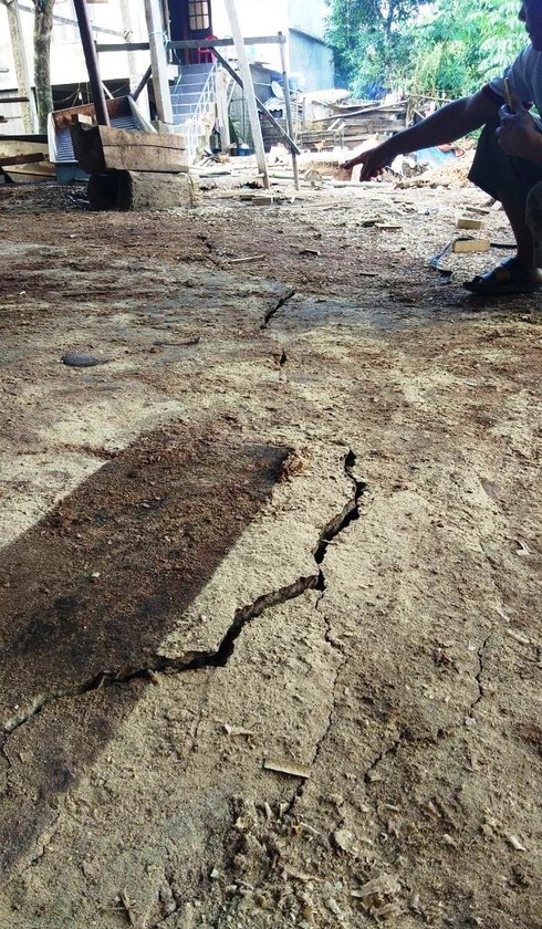 Vết nứt kéo dài xuất hiện tại nhà người dân. |