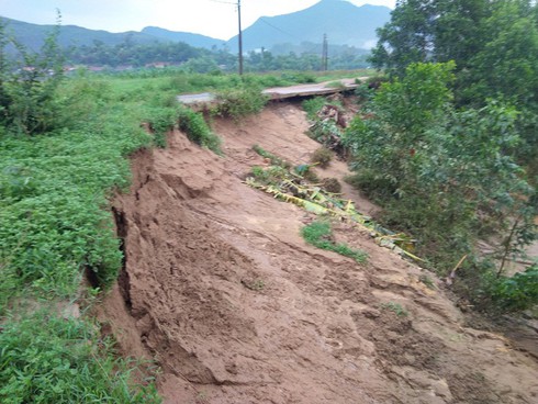 Nhiều đường giao thông bị nước xói lở sau mưa lũ. |