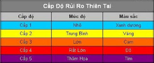 Thang đo cấp độ rủi ro thiên tai. |