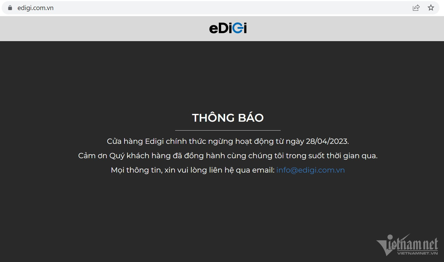 Sáng 17/5, eDiGi, một trong những đại lý ủy quyền của Apple tại Việt Nam, bất ngờ tuyên bố đóng cửa.