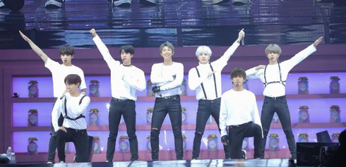7 chàng trai BTS đứng cạnh nhau biểu diễn trên sân khấu |