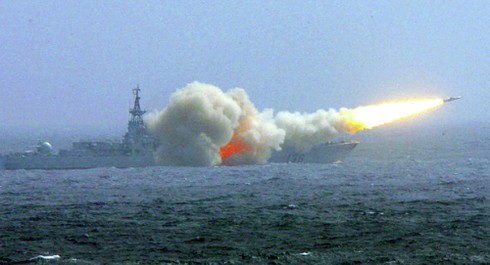 Tàu khu trục Trung Quốc phóng thử tên lửa. |