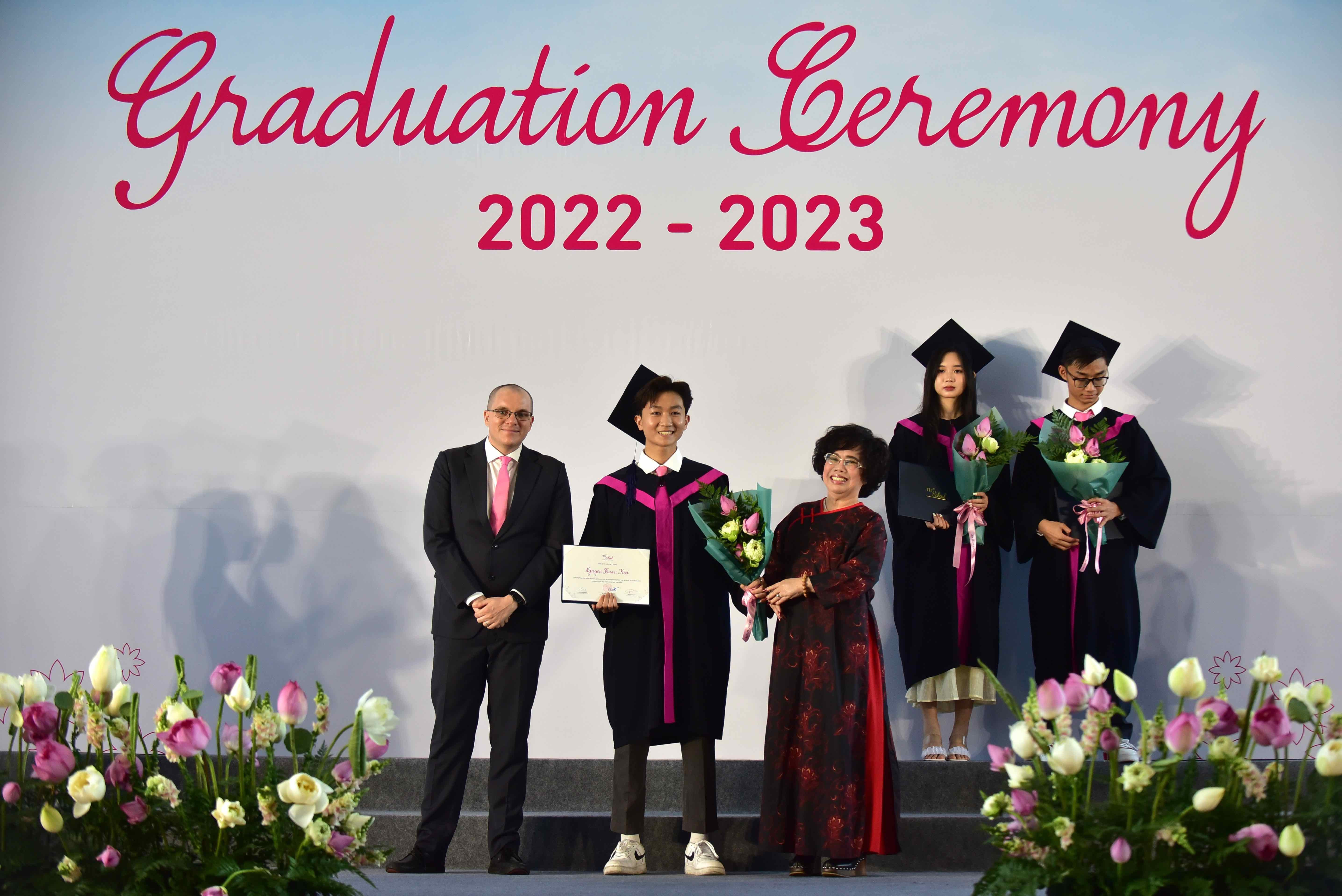 Lắng nghe hai bài phát biểu của học sinh cuối cấp, bà ấn tượng với tư duy rộng mở và những thành tích nổi bật của các em khi đạt học bổng cao vào các ngôi trường danh giá trong nước và quốc tế.