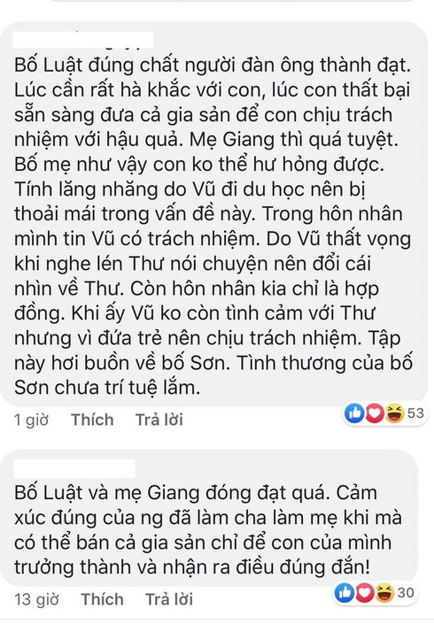 Ông đang tự trách bản thân vì đã quá cứng nhắc khi cố tình can thiệp sâu vào chuyện của 2 người trẻ. Ông biết Vũ sẽ trắng tay, ông biết ông sẽ không thể lo cho cháu nội, ông biết ông đã sai lầm khi bỏ qua ý kiến của con dâu và ông biết, tình cảm của ông với ông Sơn sau sự cố này sẽ hao mòn ít nhiều.