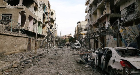 Khung cảnh hoang tàn vì chiến tranh của thị trấn Douma ở Đông Ghouta. |