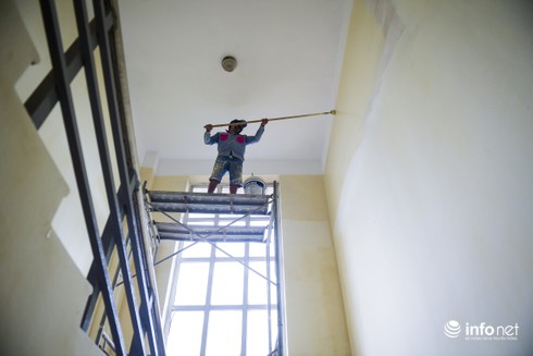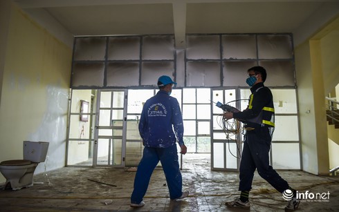 Do thời gian dài không sử dụng nên hiện tại nhiều hạng mục đã hỏng vì vậy đơn vị thi công đang bắt tay vào tu bổ lại để hoàn thiện.