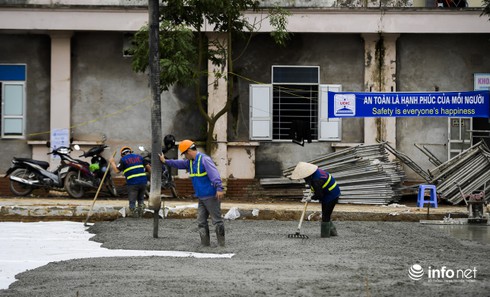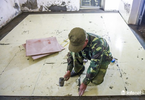 Toàn bộ nền gạch của bệnh viện được xới hết lên từ trong các phòng ra đến sảnh và hành lang. Sau đó nó được thay thế bằng lớp gạch mới, với những hạng mục chưa hỏng hóc sẽ được tận dụng để tiết kiệm chi phí.