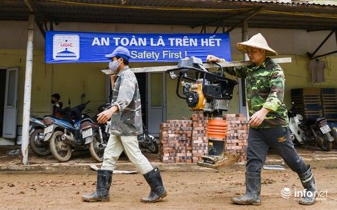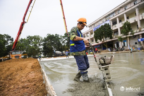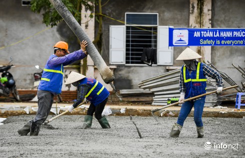 Công nhân vẫn đảm bảo tiến độ thi công.