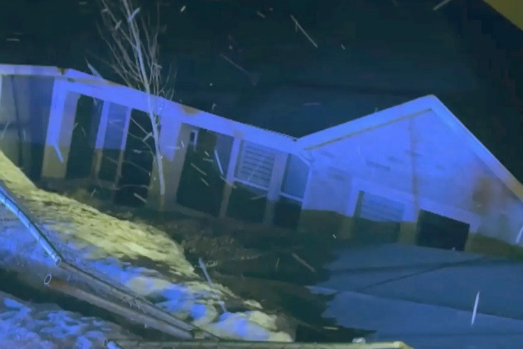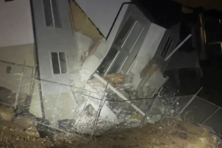 Video hai ngôi nhà nằm trên sườn đồi đổ sập trong tích tắc