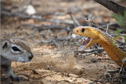 Sở hữu răng nanh phun có nọc độc cực mạnh nhưng rắn hổ mang phải bỏ cuộc trước sự gan dạ, kiên cường của sóc mẹ. |