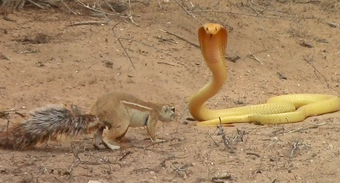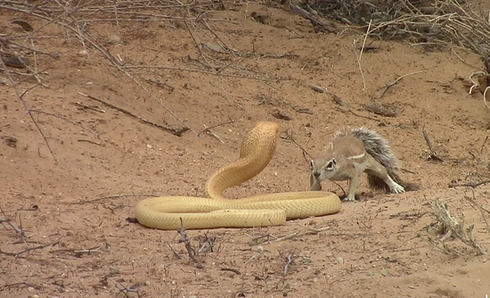 Cuộc chiến giữa sóc mẹ và rắn hổ mang Cape. |