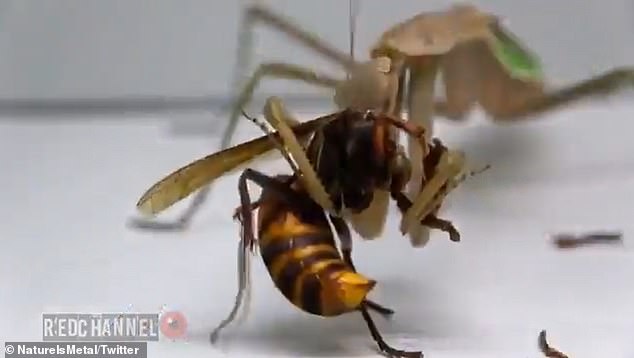 Đoạn video chia sẻ trên mạng xã hội Twitter cho thấy cảnh ong bắp cày khổng lồ hoàn toàn thất thế trước bọ ngựa. Trong video, hai sinh vật dường như được thả vào chung một chuồng.