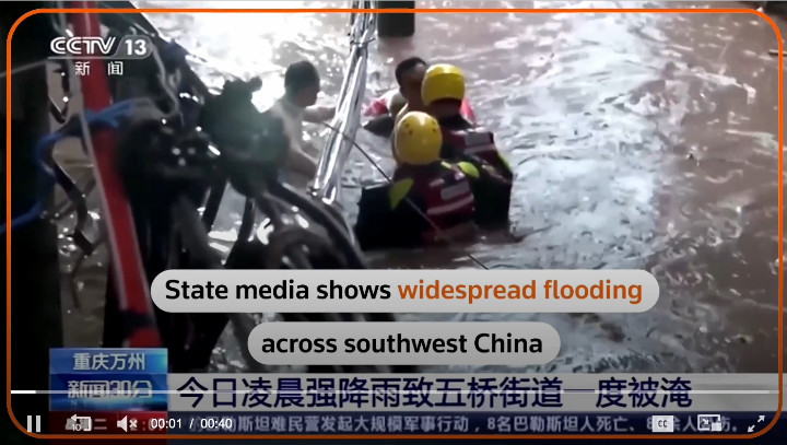 Theo hãng tin BBC và Reuters, cảnh báo thời tiết đã được đưa ra đối với nhiều khu vực rộng lớn ở miền trung và tây nam Trung Quốc. Hàng nghìn người đã được sơ tán.