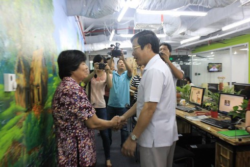 Bộ trưởng nói chuyện với cán bộ nhân viên kênh VTC16 |