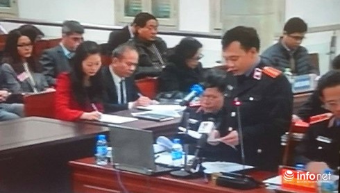 Đại diện VKS giữ quyền công tố tại phiên tòa đọc lời đối đáp sáng 15/1. |