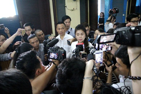 BàDiệp Thảo trả lời báo chí tại phiên tòa. |
