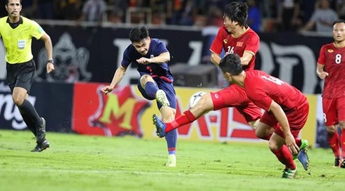 Tiếp đó, khoảng 10 phút sau cổ động viên Việt Nam phải nín thở với pha bóng được treo từ cánh trái để Thitipan băng cắt đánh đầu. Nhưng rất may cho ĐT Việt Nam là pha dứt điểm của số 8 bên phía đội chủ nhà lại không chuẩn xác.