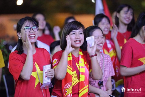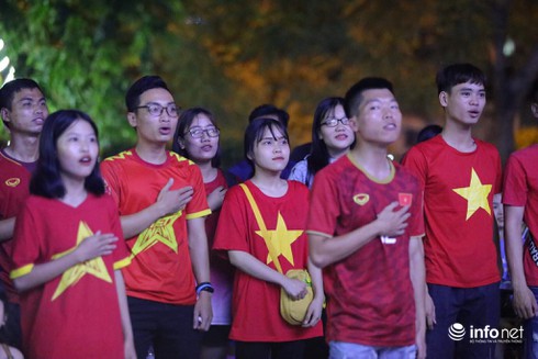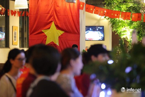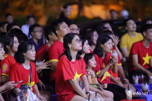 CĐV Việt Nam tại một điểm xem bóng đá tập trung do VFS tổ chức tại Hà Đông, Hà Nội. |