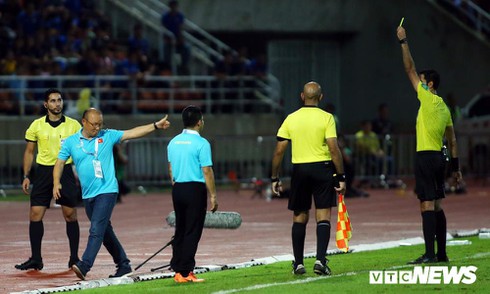HLV Park Hang Seo nhận thẻ vàng. (Ảnh: Ngọc Anh/VTC NEWS) |