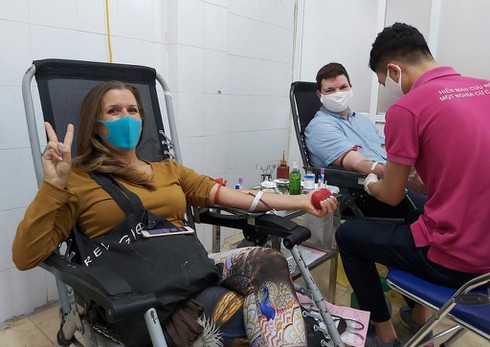 Dưới đây là hình ảnh những du khách đến từ các quốc gia khác nhau đang sống ở Việt Nam đã tham gia hiến máu.