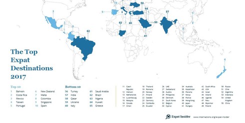 Xét về chỉ số tổng thể, chỉ số Điểm đến của người nước ngoài năm 2017, Bahrain - quốc gia thuộc vùng Vịnh đã vượt lên ngoạn mục và trở thành điểm đến được yêu thích nhất của những người muốn sinh sống ở nước ngoài, tiếp đến là Costa Rica và Mexico. Việt Nam xếp thứ 12 trong chỉ số này.