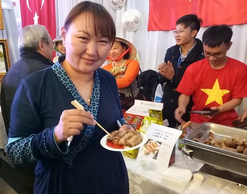 Tham gia Hội chợ lần này có gần 20 nước. Không chỉ giới thiệu về văn hóa ẩm thực, mỗi nước còn mang đến hội chợ những bài hát, điệu múa và trang phục truyền thống của dân tộc mình. Và nổi bật lên trong những bộ trang phục ấy là tà áo dài thướt tha, mềm mại của các nữ cán bộ Đại sứ quán và nữ sinh viên Việt Nam tại Mông Cổ - Hội chợ rực rỡ như một đóa hoa đa sắc màu.