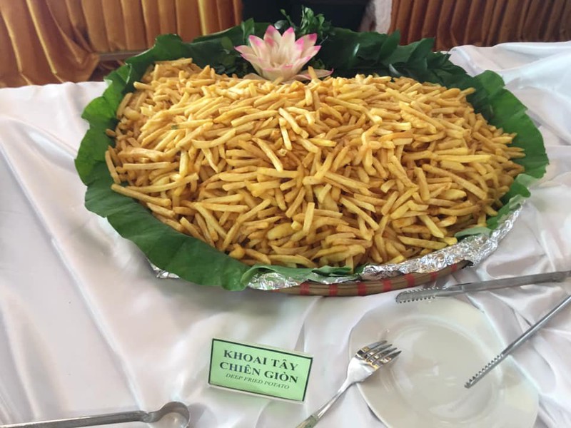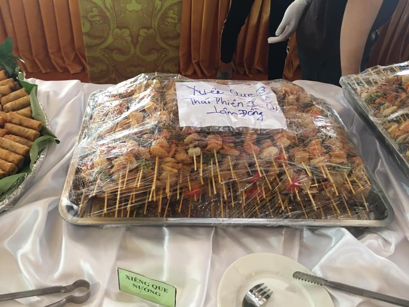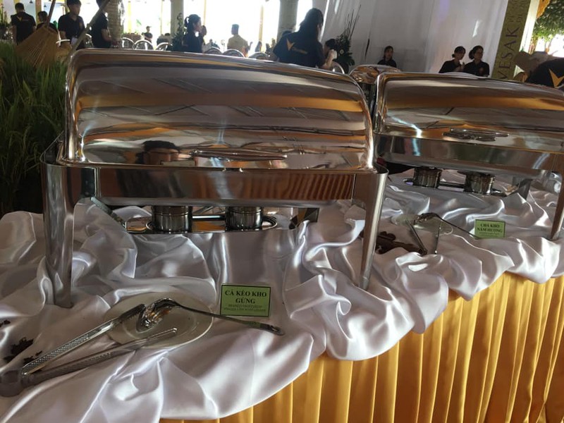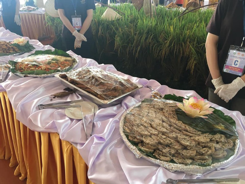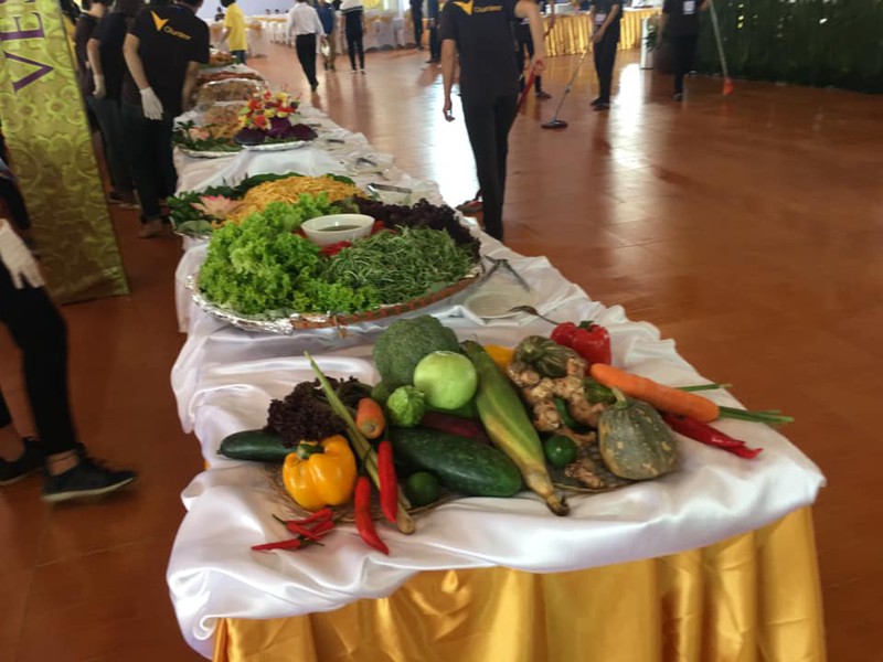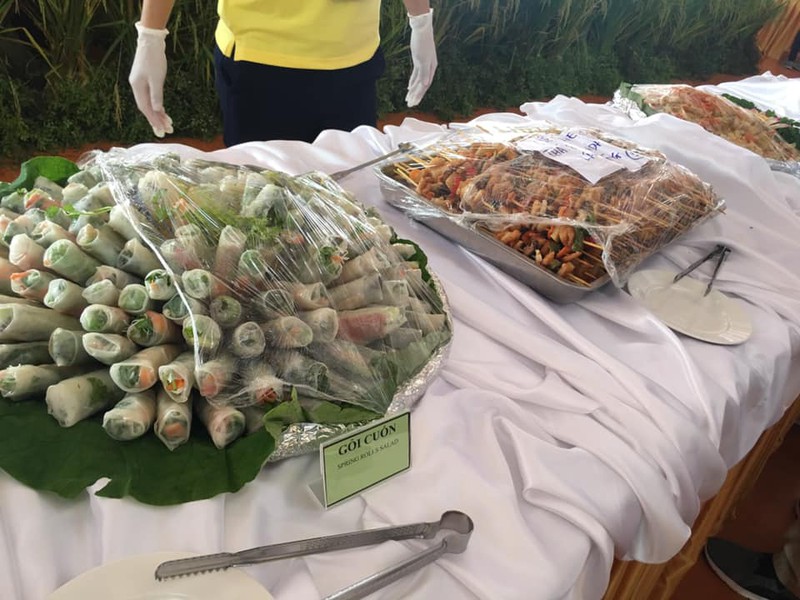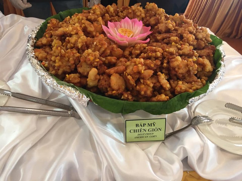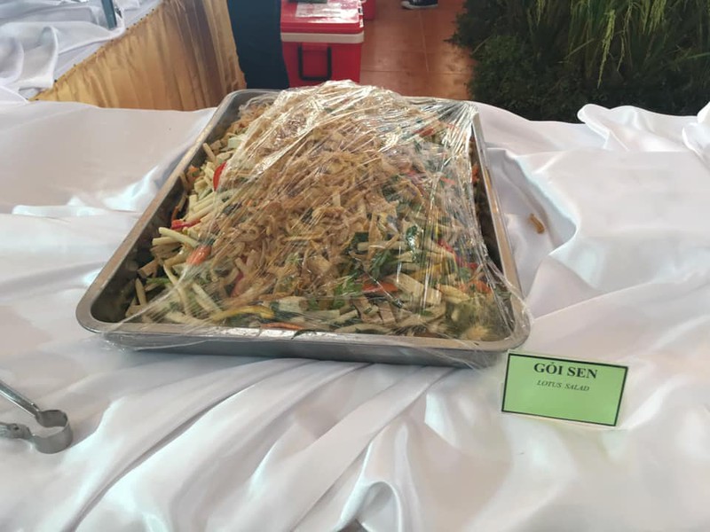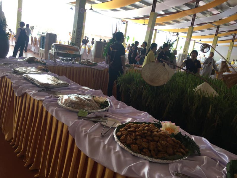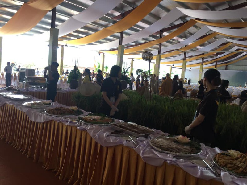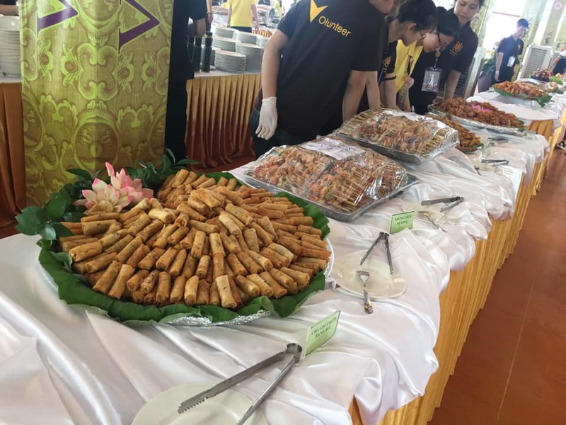 Trưa 12/5, với nhà ăn dành cho hàng nghìn người, Ban tổ chức Đại lễ Vesak 2019 đã chuẩn bị hàng vạn suất ăn cho các đại biểu và tiệc buffe với hàng trăm món ăn mang đậm chất Việt như cơm sen, cơm tám, ngó sen, phở cuốn...