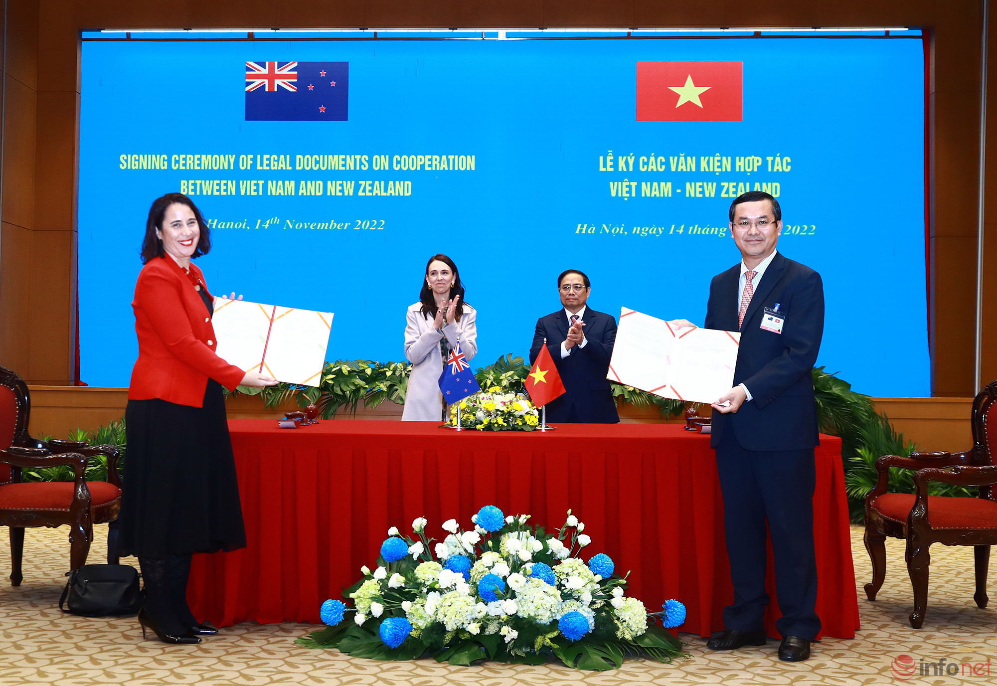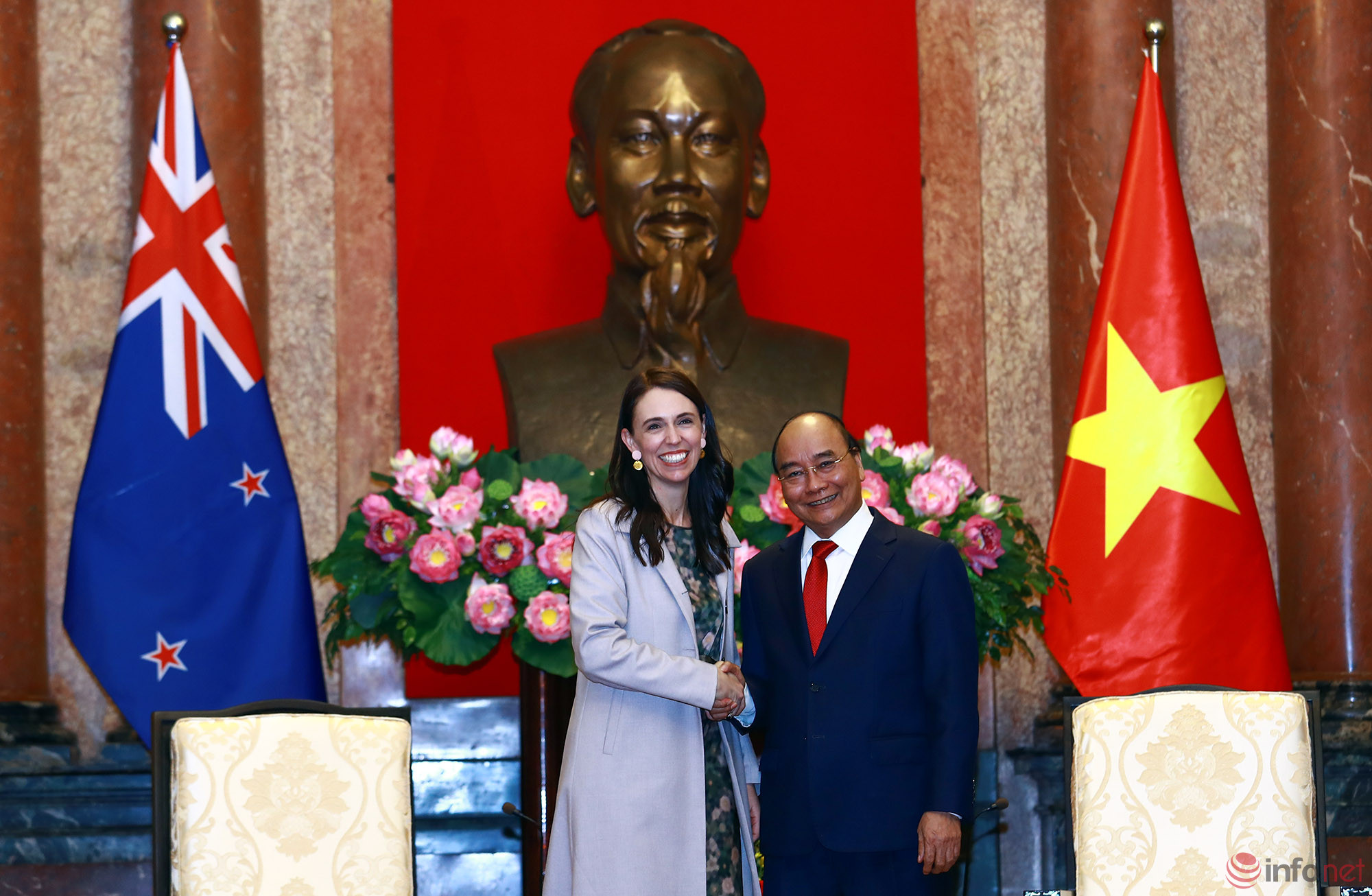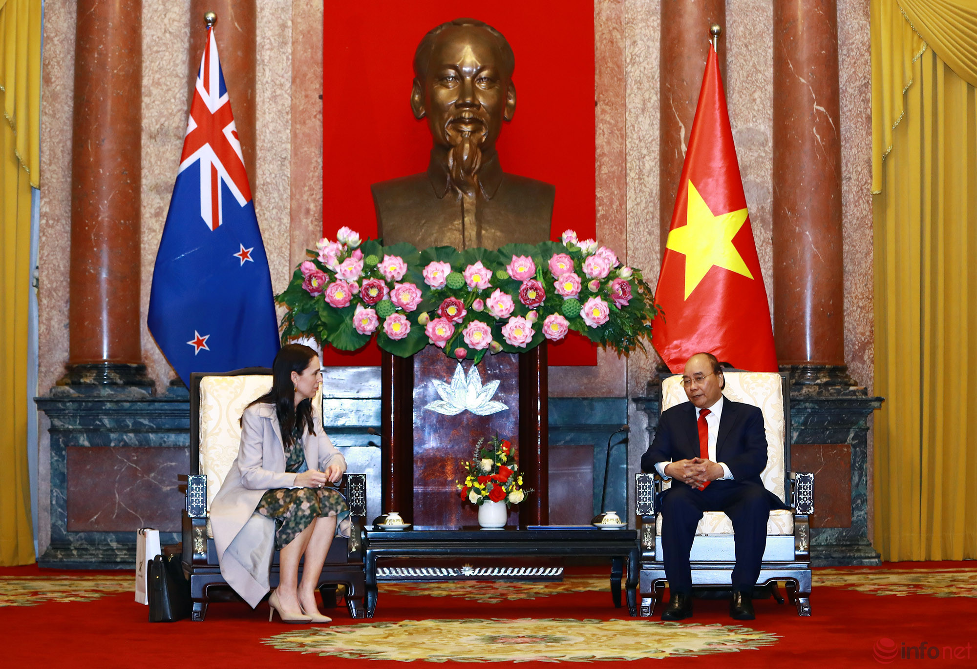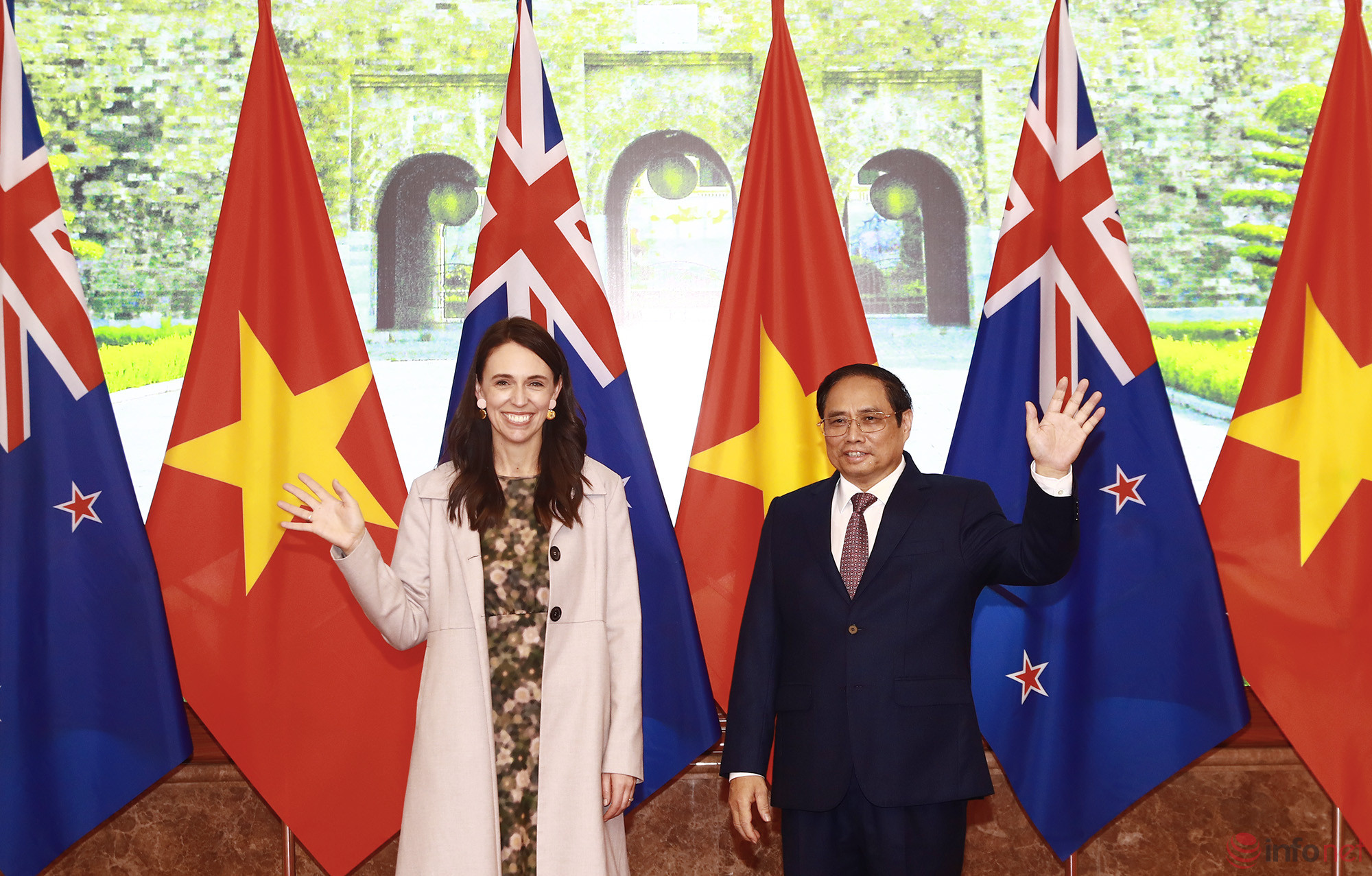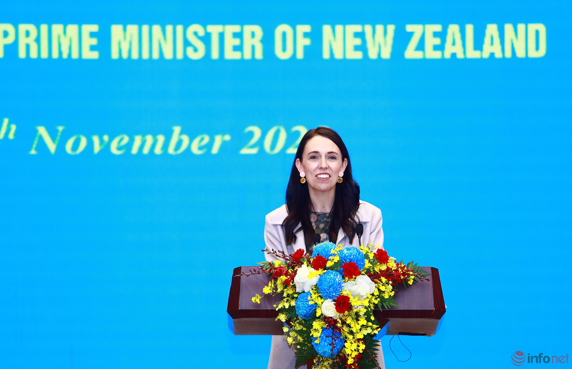 Thủ tướng New Zealand Jacinda Ardern thực hiện chuyến thăm chính thức tại Việt Nam từ ngày 14-17/11. Nhân chuyến thăm, Thủ tướng Ardern đã dẫn đầu một phái đoàn thương mại New Zealand nhằm thúc đẩy mối quan hệ hợp tác tăng cường với Việt Nam, nền kinh tế được nhận định là thị trường đang nổi ở Đông Nam Á.