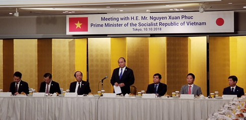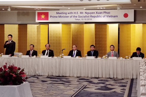 Thủ tướng Nguyễn Xuân Phúc phát biểu tại buổi tiếp xúc với các doanh nghiệp của Nhật Bản. |