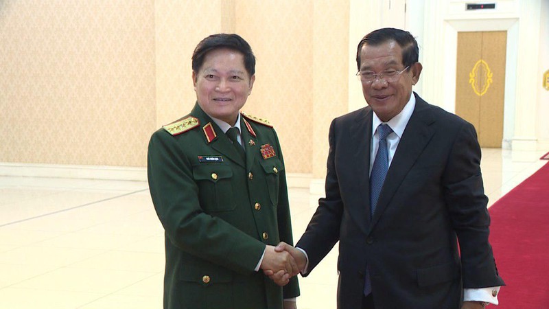 Đại tướng Ngô Xuân Lịch gặp gỡ Thủ tướng Campuchia Hun Sen.