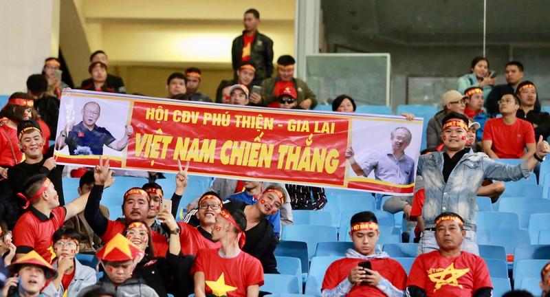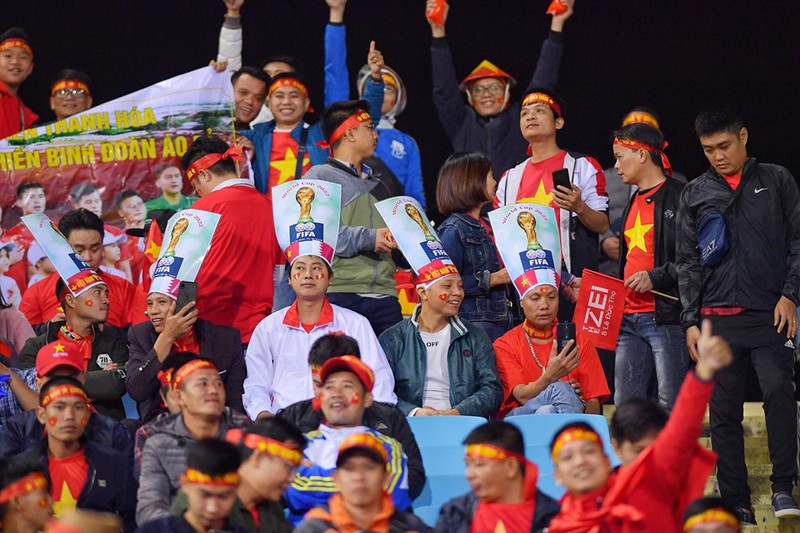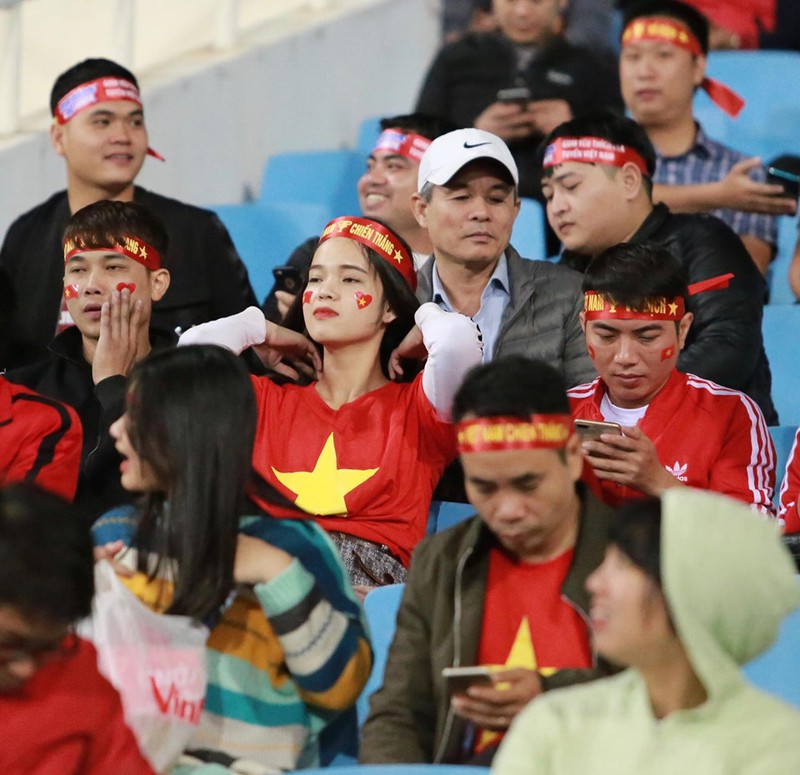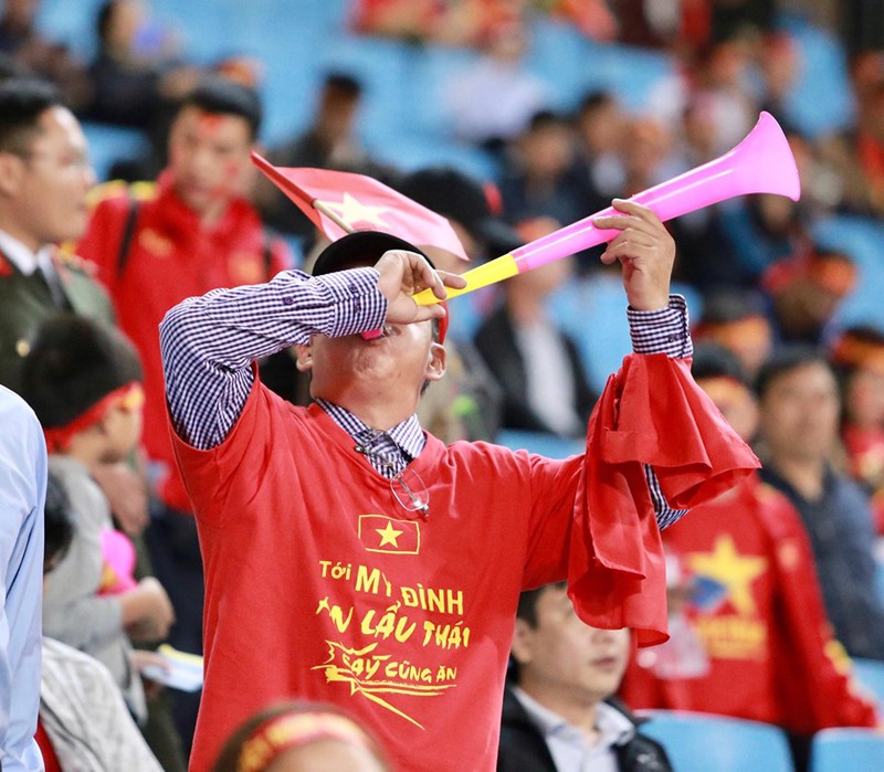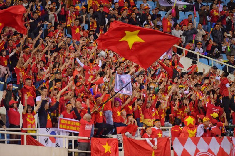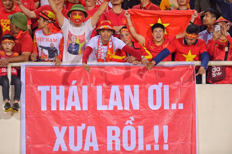 Chỉ còn ít phút nữa là đến giờ bóng lăn (20h tối 19/11), không khí trận đấu giữa ĐT Việt Nam - ĐT Thái Lan trên SVĐ Mỹ Đình đã rất nóng. CĐV của 2 đội đã lấp đầy các khán đài với bầu không khí vô cùng cuồng nhiệt.