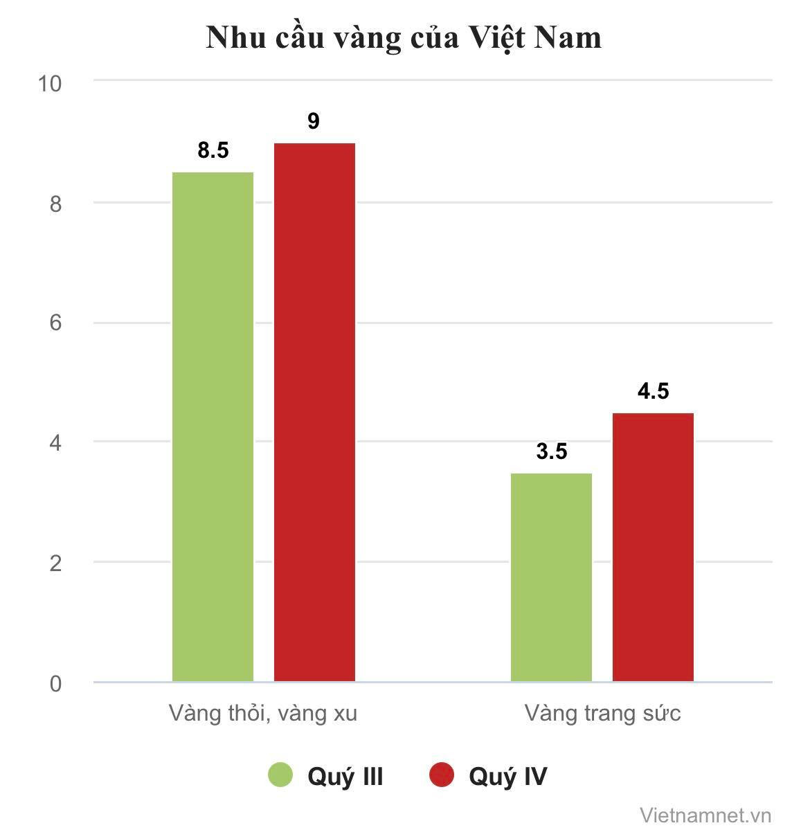 Theo Báo cáo xu hướng nhu cầu vàng năm 2022 của WGC, nhu cầu tiêu dùng vàng của Việt Nam quý IV/2022 tăng 58% so với cùng kỳ năm 2021, lên 13,5 tấn.