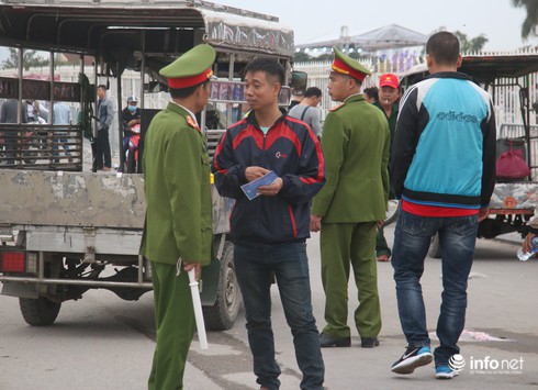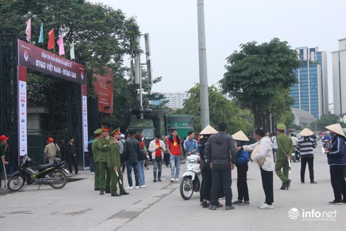 Trước giờ bóng lăn trận đấu Việt Nam - UAE, lực lượng chức năng chốt chặn ở nhiều địa điểm xung quanh SVĐ Mỹ Đình để kiểm soát an ninh và giữ gìn trật tự. Tuy nhiên, cò vé vẫn bán vé công khai mà không gặp bất cứ trở ngại gì.