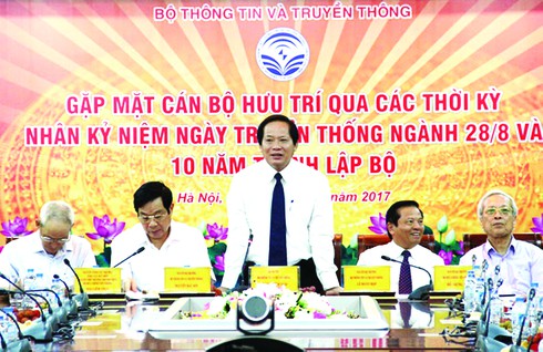 “Từ một ngành ban đầu còn lạc hậu về kỹ thuật, thiếu thốn về cơ sở vật chất và nhiều hạn chế trong quản lý, kinh doanh; trải qua các giai đoạn phát triển, đến nay, ngành TT&TT đã trở thành một ngành có kết cấu hạ tầng đồng bộ, hiện đại, bắt kịp xu thế phát triển của thế giới; có tốc độ phát triển cao cả về quy mô, doanh thu và thị trường; có tỷ trọng đóng góp cho ngân sách nhà nước lớn; được Đảng, Nhà nước và nhân dân ghi nhận là một trong những ngành đi đầu trong sự nghiệp đổi mới và thực sự là động lực quan trọng thúc đẩy sự phát triển kinh tế xã hội; đảm bảo quốc phòng, an ninh của đất nước. Lịch sử 72 năm xây dựng và phát triển của ngành Bưu điện (nay là ngành TT&TT) là lịch sử của những chiến công rất đáng tự hào của những thế hệ cha anh đã hy sinh vì độc lập, tự do của dân tộc, vì cuộc sống ấm no hạnh phúc ngày hôm nay; là lịch sử lao động và cống hiến của những cán bộ lão thành ngành TT&TT; là những trang sử vẻ vang được viết bởi những cán bộ, công chức, viên chức và người lao động đã và đang làm việc, cống hiến cho sự phát triển của toàn ngành”, Ủy viên Trung ương Đảng, Bộ trưởng Bộ TT&TT Trương Minh Tuấn chia sẻ tại buổi gặp mặt thân mật cán bộ hưu trí và cán bộ ATK bưu điện nhân kỷ niệm 10 năm thành lập Bộ TT&TT vừa diễn ra trung tuần tháng 8/2017.