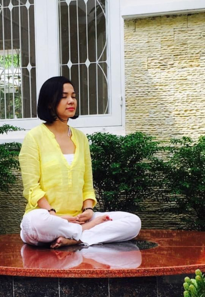"Từ khi là con nhà Phật, có pháp danh, tôi chánh niệm, hướng đến lối sống 'cho' nhiều hơn 'nhận', tâm hồn thấy bình yên", Việt Trinh nói.