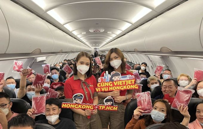 Trước đó, vào sáng ngày 10/2, những hành khách đầu tiên trên chuyến bay TP HCM - Hong Kong của Vietjet đã nhận hoa và quà lưu niệm nhân dịp hãng hàng không này mở lại đường bay thẳng kết nối hai trung tâm kinh tế, tài chính, văn hóa, du lịch.