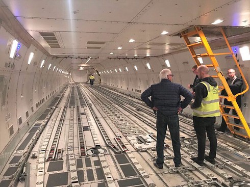 Các chuyên gia kiểm tra lại khoang chứa bò trong máy bay chuyên dụng trước khi chuyên chở các cô bò A2 về Việt Nam. |