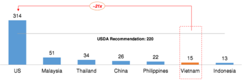 Mức tiêu thụ sữa bình quân đầu người. Nguồn: Vinamilk |