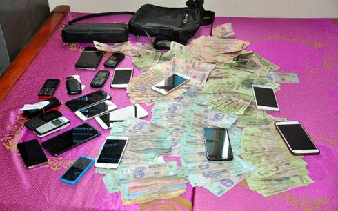 Tại sới bạc, cơ quan chức năng thu giữ 20 điện thoại di động, thu trên chiếu bạc hơn 69 triệu đồng, thu trên người các đối tượng 105 triệu đồng cùng nhiều tang vật liên quan.