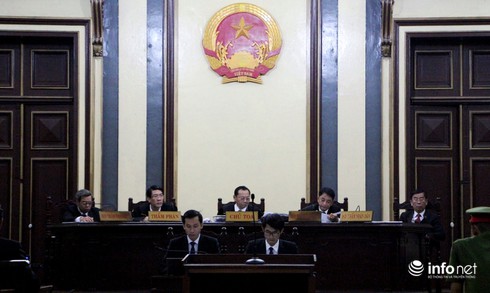 HĐXX nghe các bên lập luận tại phiên tòa. |