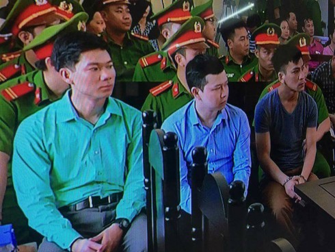 Bị cáo Hoàng Công Lương (ngoài cùng bên trái) trong ngày xét xử thứ 12 của phiên tòa. |