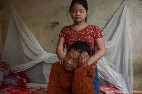 Cô con gái đầu của anh Bốn bị khuyết tật mắt bẩm sinh nhưng cháu rất ngoan, biết nghe lời và rất quấn quýt bên bà nội. |